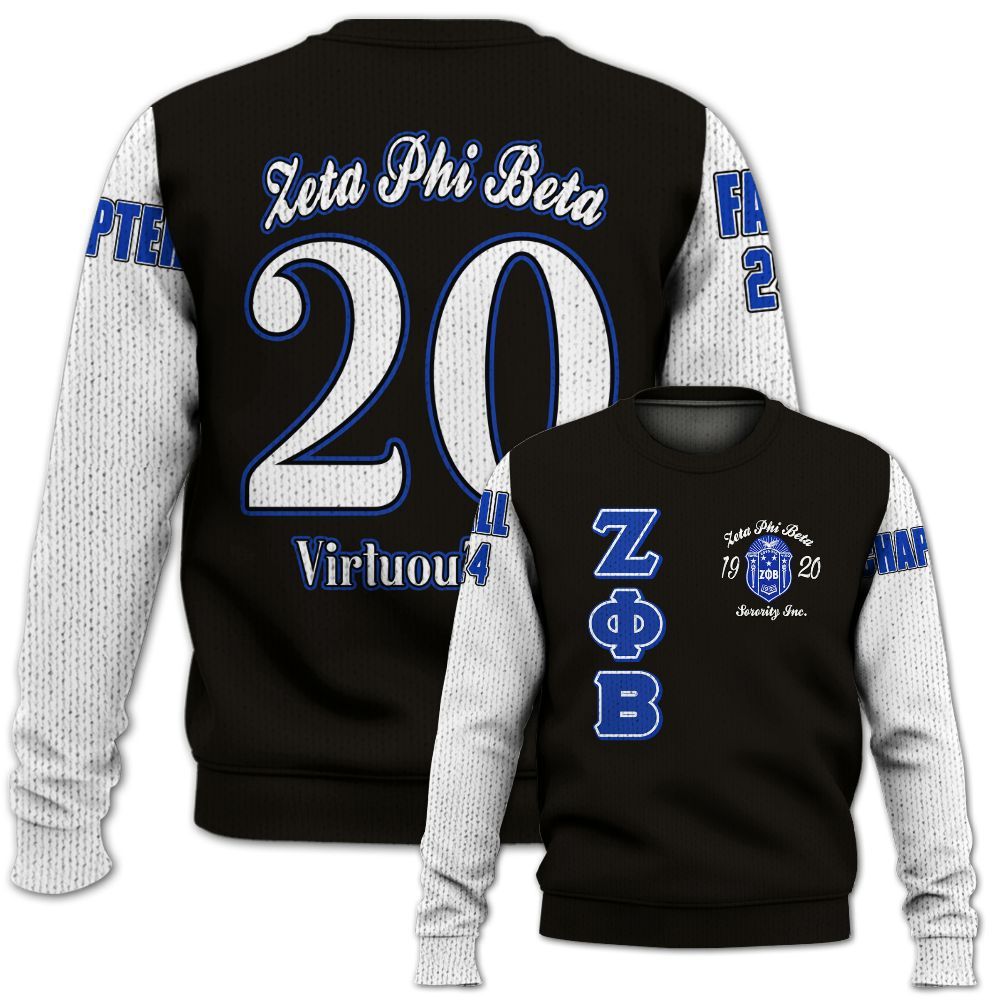 Ireishprint Zeta Phi Beta Custom Chapter Shirt, White Color Zeta Queen Z Phi B Black 1920 Sorority Knitted Sweater